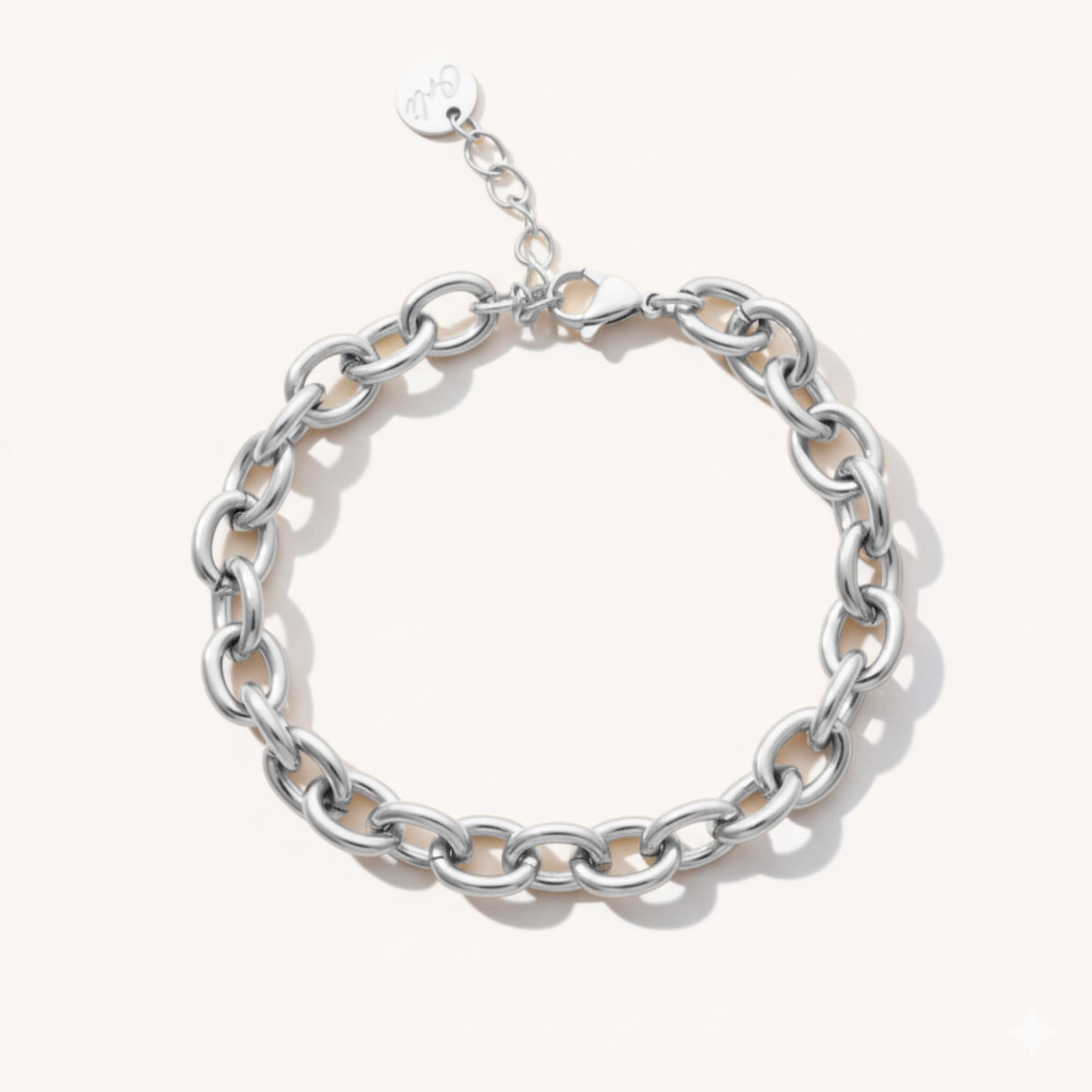 The Chunky Oval Chain Bracelet in Silver features an elegant oval-link design, combining classic style with a modern edge. Crafted from premium stainless steel, this bracelet is waterproof, tarnish resistant and perfect for everyday wear or layering.