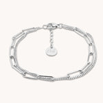 Paperclip & Fine Chain Layered Bracelet in Silver