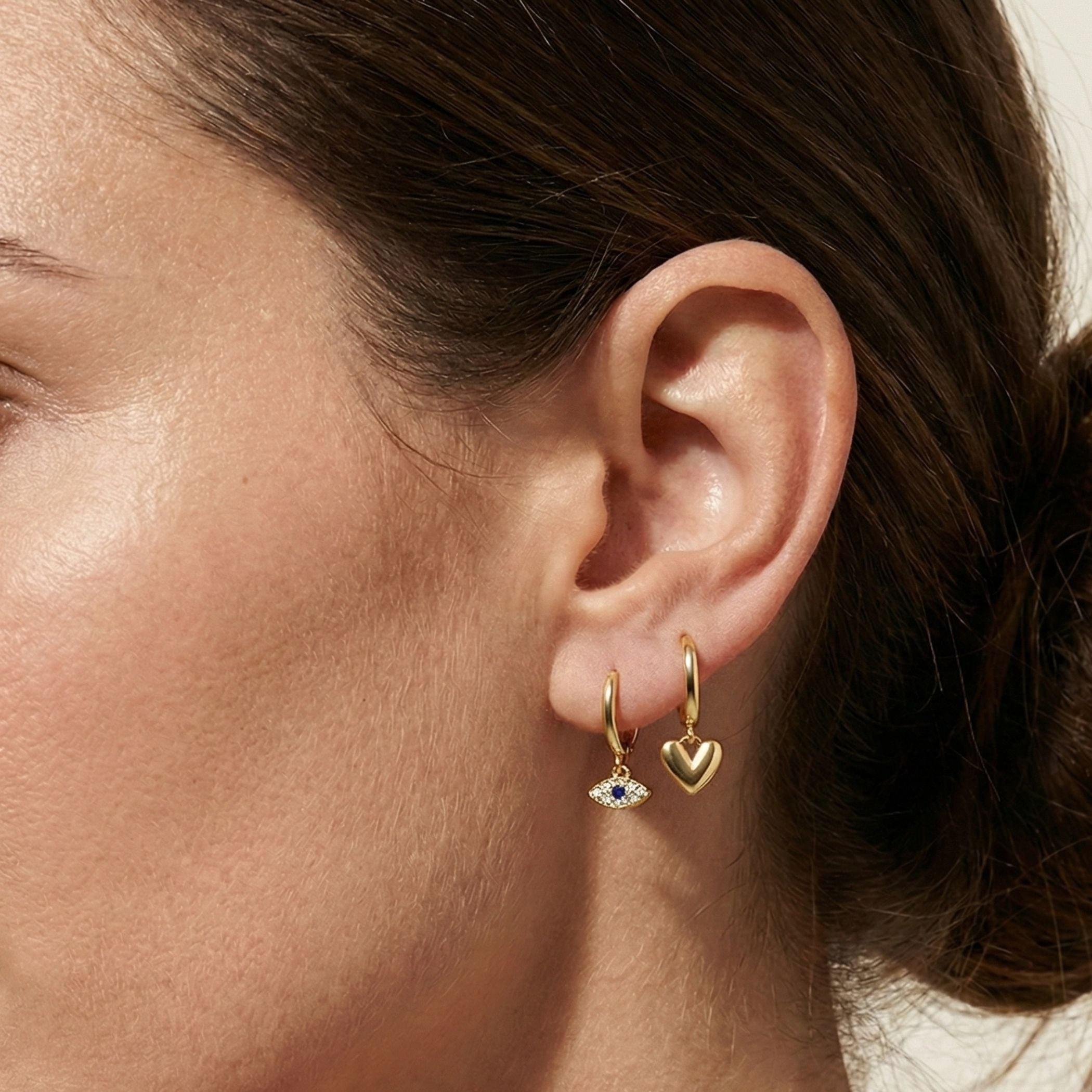 Sterling Silver Evil Eye Dainty Huggie Hoops, Gold