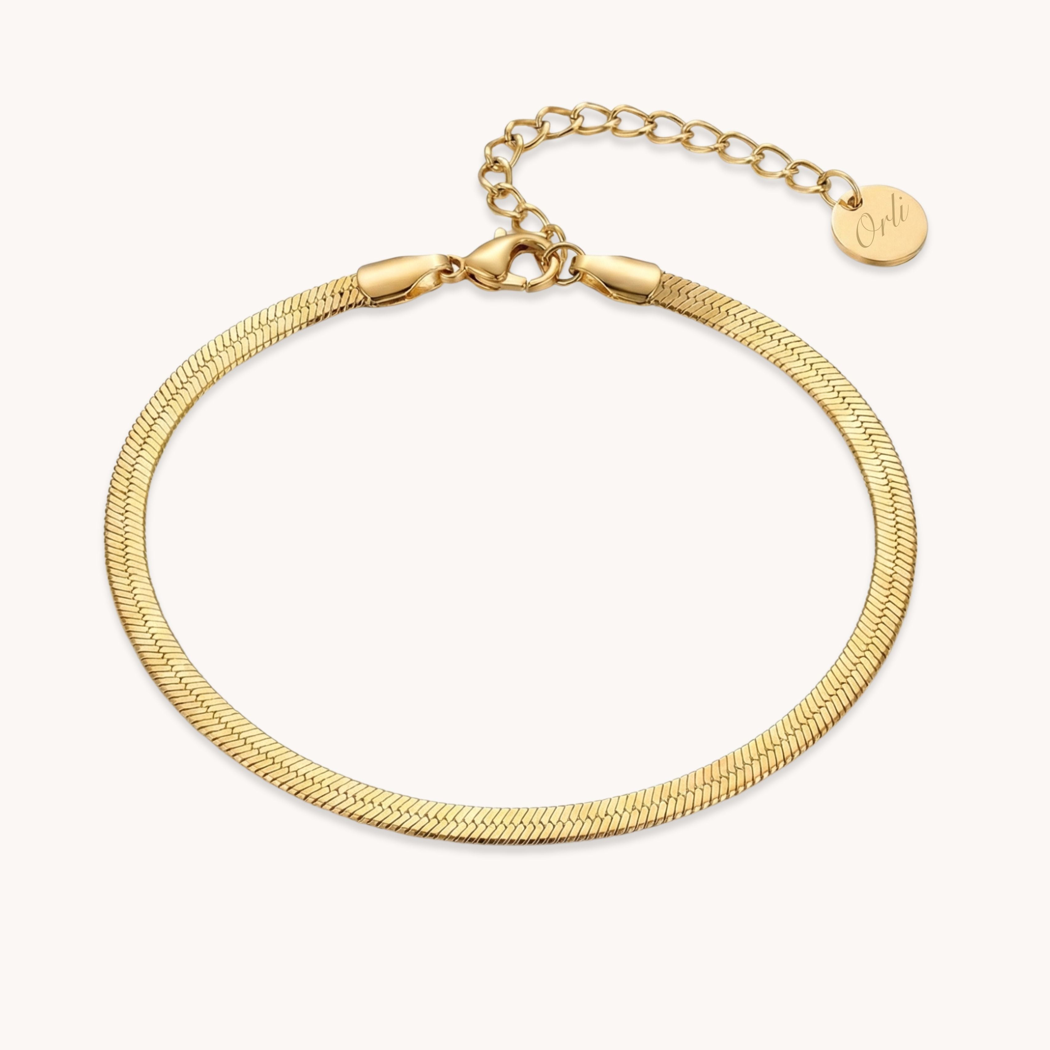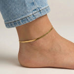 This golden flat snake chain anklet will add the ultimate shine to your look. Finished with an extension chain and lobster closure to ensure the perfect fit. The Perfect accessory for a day to night look, adding a touch of glamour to your every step.