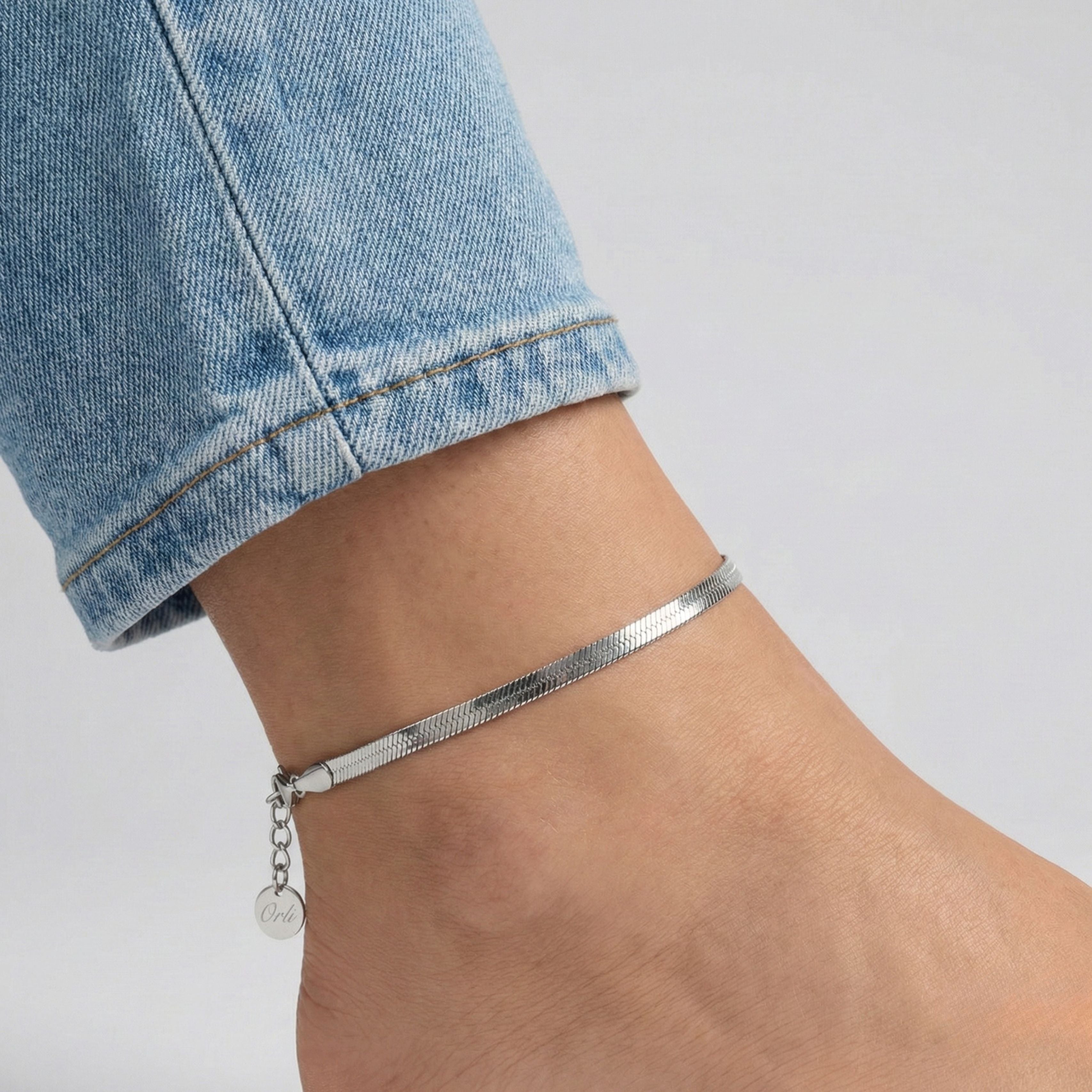 Snake Chain Anklet, Silver