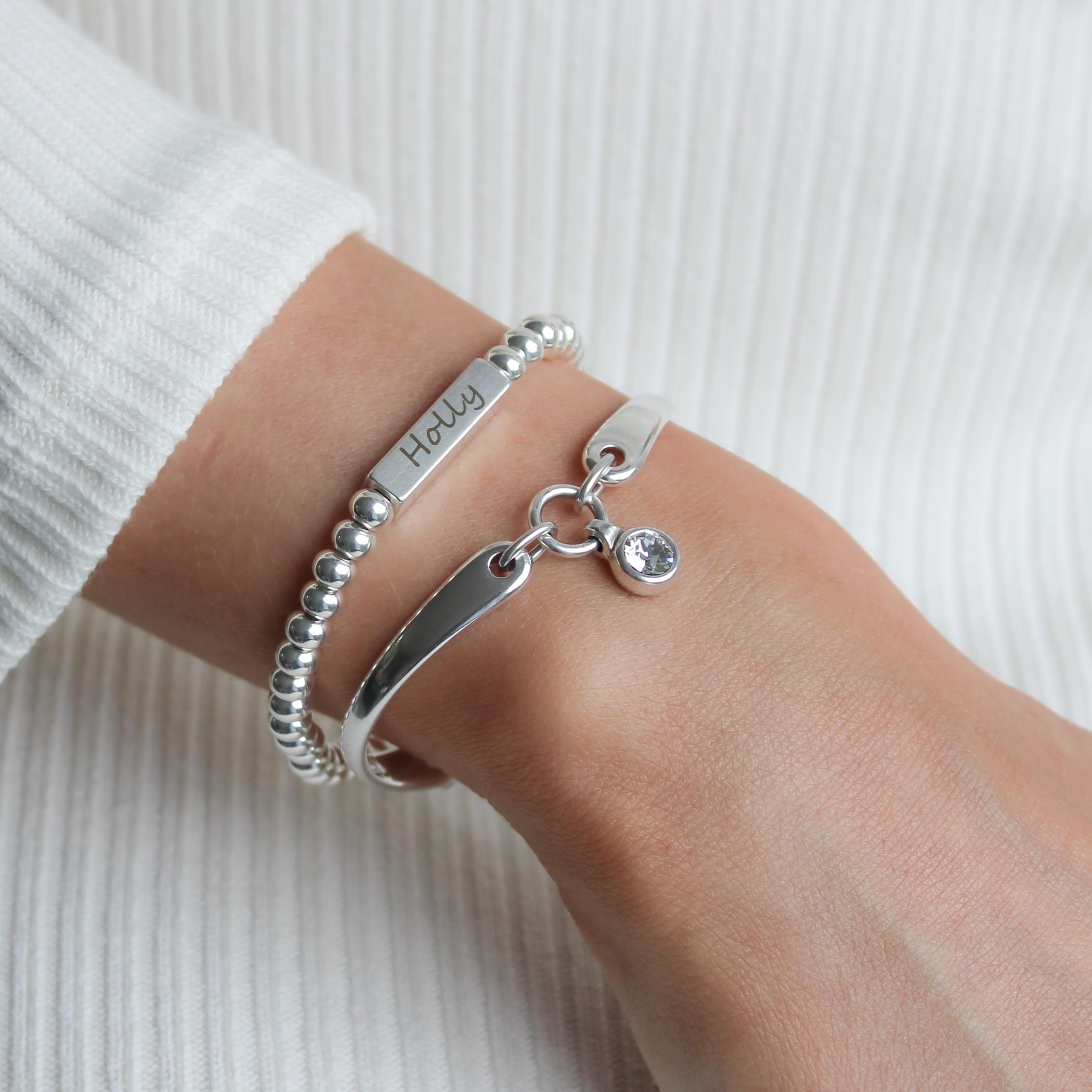 Understated and elegant, this single-crystal brangle adds a hint of sparkle to any outfit. Choose a crystal to represent a birthstone or favourite colour.