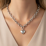 Elevate your look with this striking chunky oval chain necklace, accented with a charming puffed heart pendant.