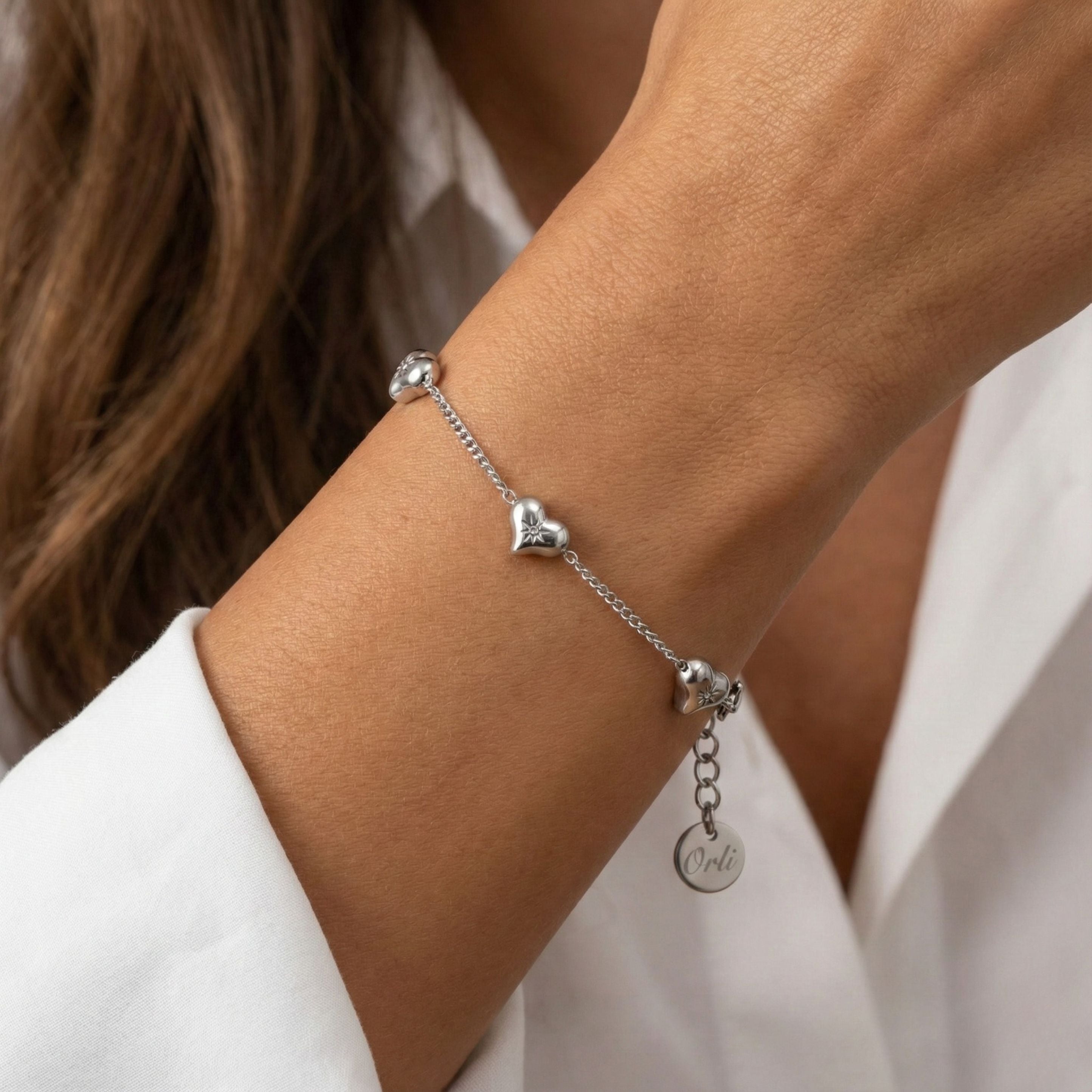 A silver heart bracelet that sparkles with meaning — perfect for gifting, stacking or wearing solo for a touch of understated glamour.
