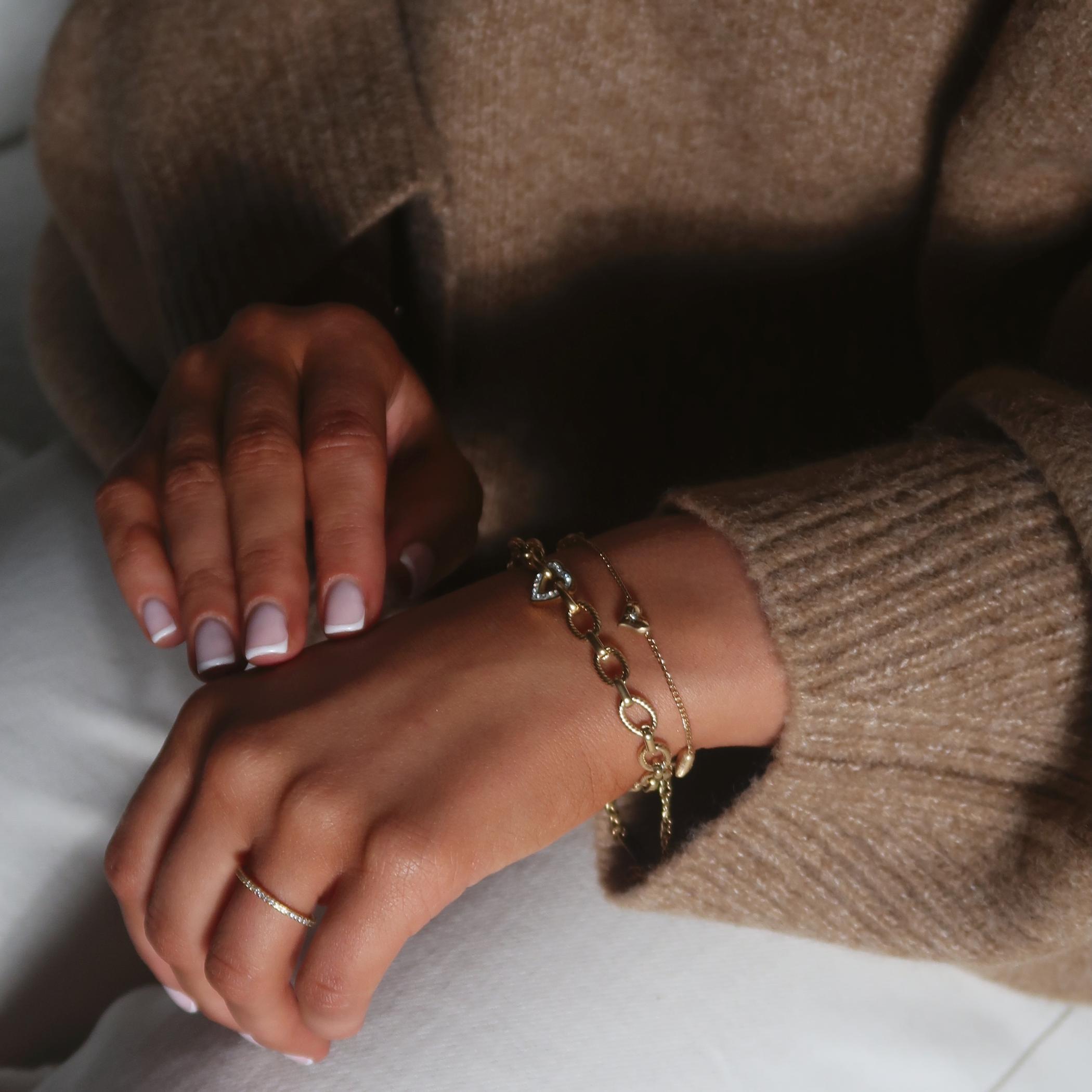 A gold heart bracelet that sparkles with meaning — perfect for gifting, stacking or wearing solo for a touch of understated glamour.