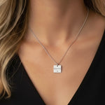 Silver square pendant necklace with CZ detail in stainless steel – waterproof & tarnish-free.