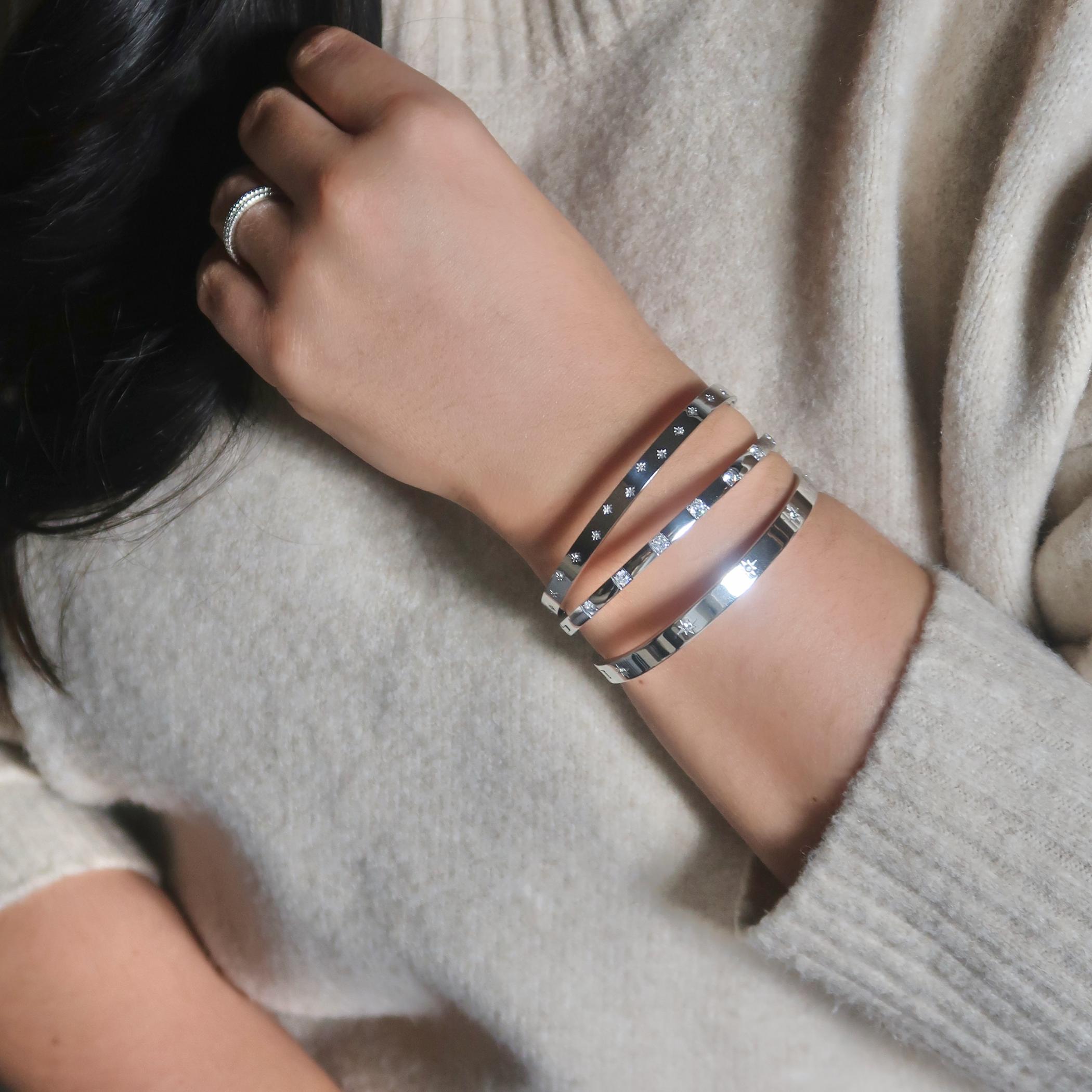 Design: Smooth bangle with mini starburst crystal detailing for a delicate, glamorous finish