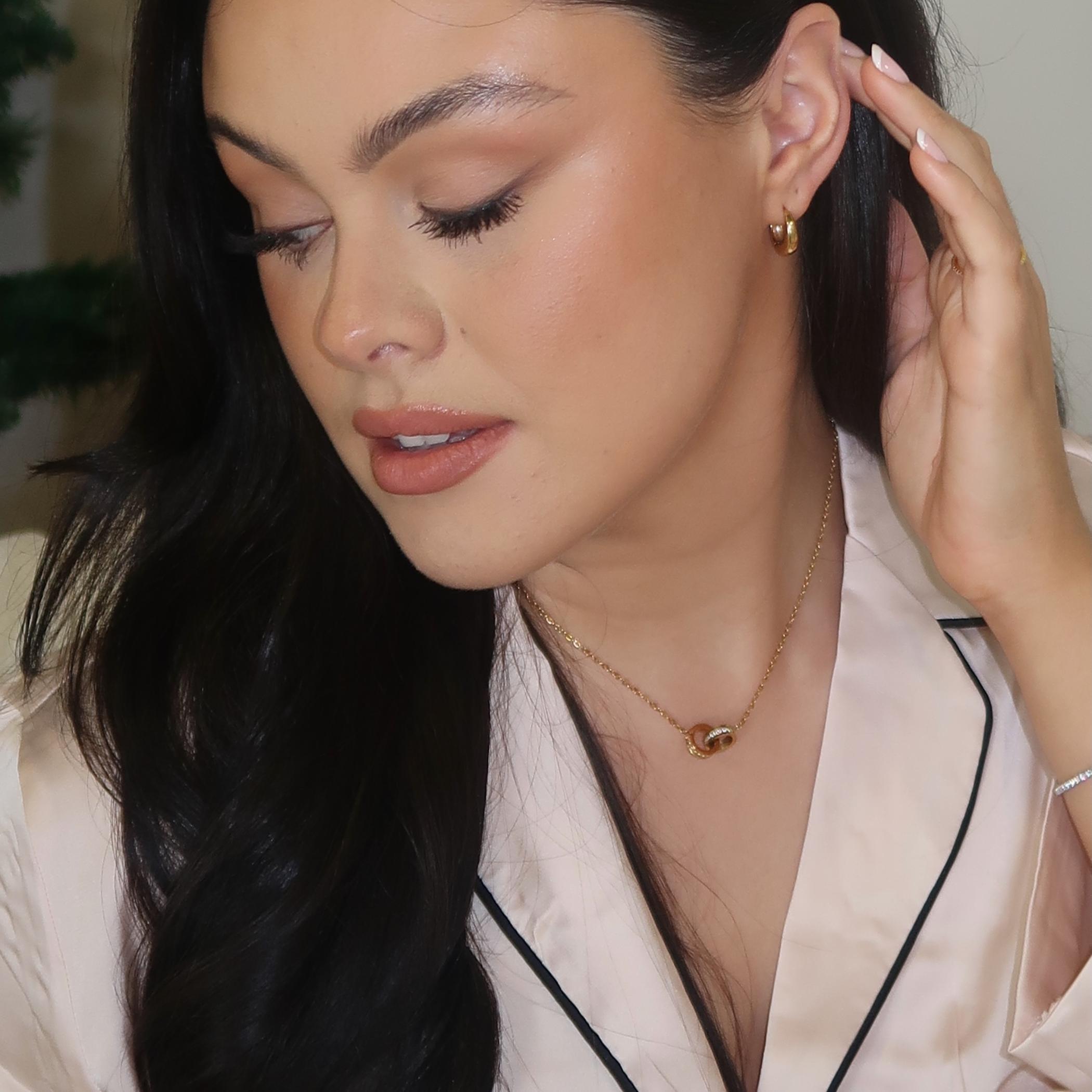 Timeless Design: Linked rings with sparkling crystals for added elegance.