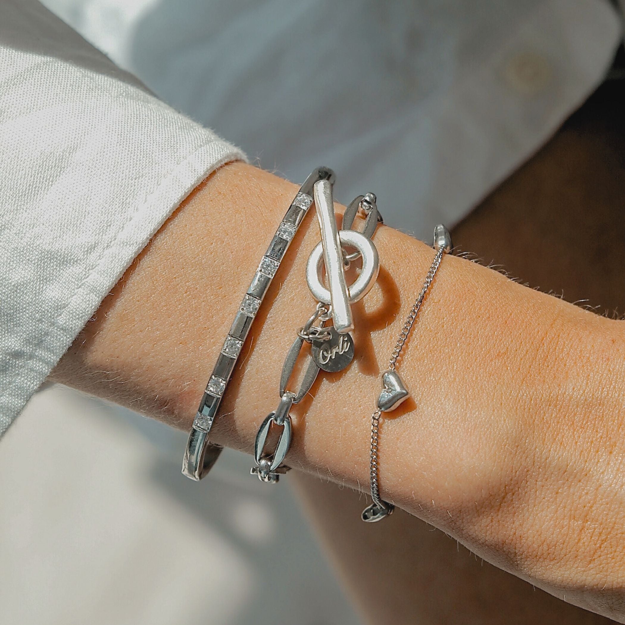 Bold, sleek, and effortlessly on-trend—the Long Link T-Bar Bracelet is your silver go-to for everyday styling. Crafted from high-shine stainless steel, this chunky chain bracelet is finished with a classic T-bar clasp and available in two sizes for the perfect fit. It's minimal, modern, and made to stack.