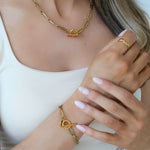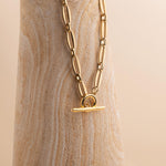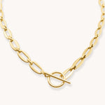The Long Link T-Bar Necklace in Gold is a modern statement piece featuring elongated oval links and a front T-bar clasp. Designed to stand out on its own or layer beautifully with other chains, it’s the perfect balance of minimalism and bold style.