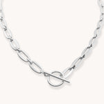 The Long Link T-Bar Necklace in Silver is a modern statement piece featuring elongated oval links and a front T-bar clasp. Designed to stand out on its own or layer beautifully with other chains, it’s the perfect balance of minimalism and bold style.