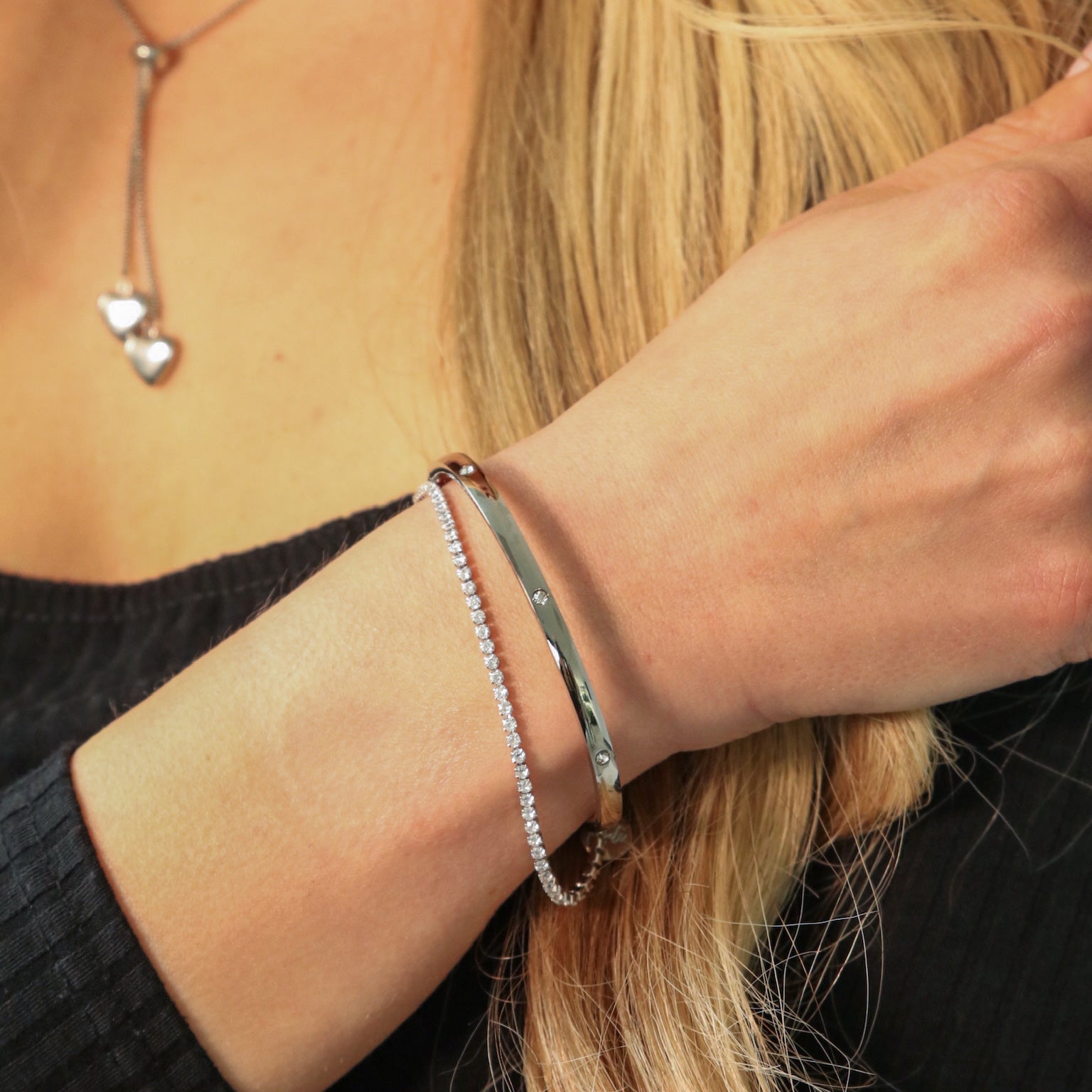 A silver tennis bracelet that’s classic, dazzling and made to last — perfect for everyday elegance or special occasions.