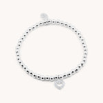 Sterling silver beads stretch bracelet with a crystal encrusted Olivia heart charm. Great for stacking with other beads bracelets for the ultimate look!