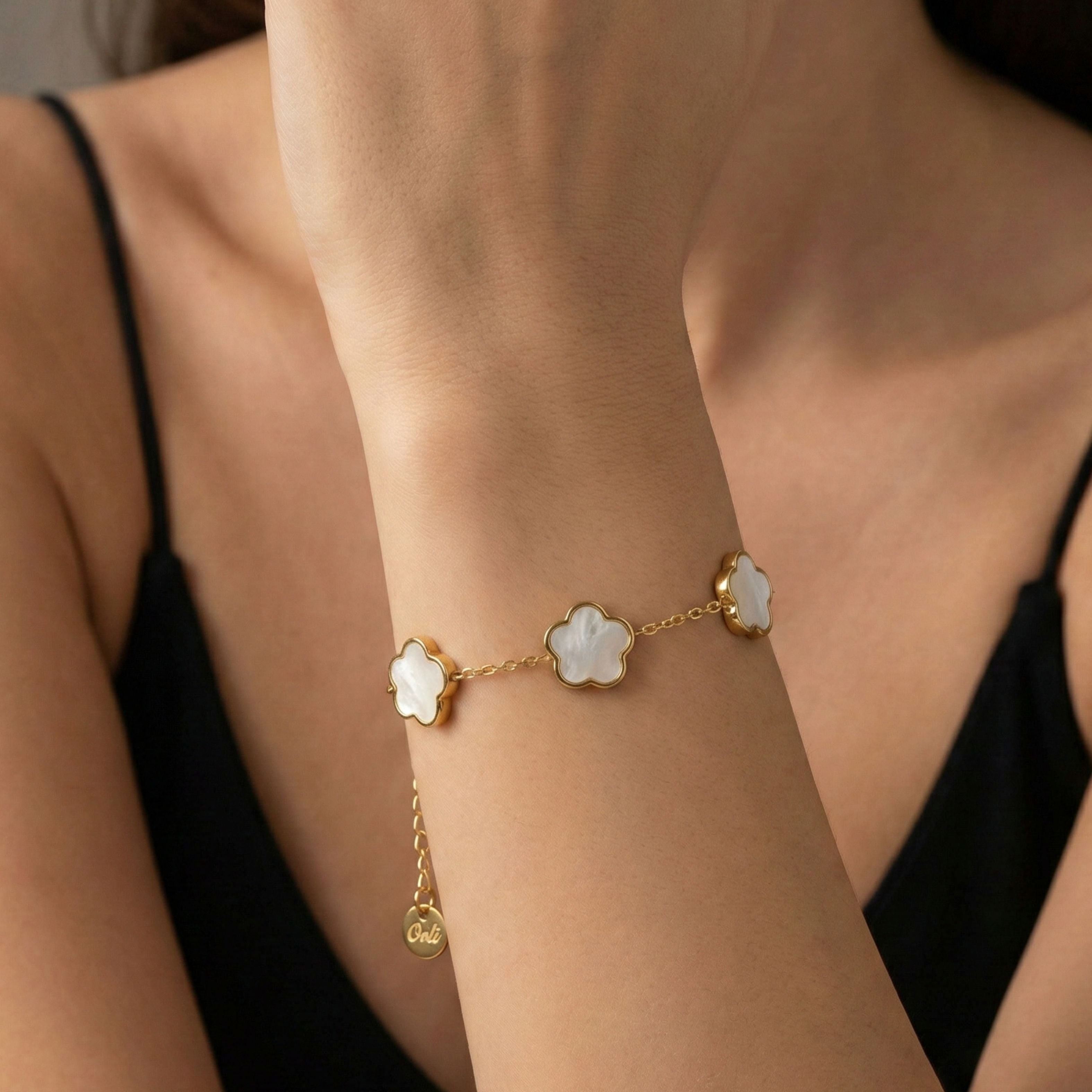 A beautifully classic white clover bracelet that radiates understated luxury.