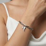 The Mini Hourglass Heart & Birthstone Long Link Bracelet in Silver features a bold long-link chain adorned with a sculpted hourglass heart pendant and a sparkling birthstone charm. Crafted from premium stainless steel, it’s a timeless piece that adds a personal touch to any look.