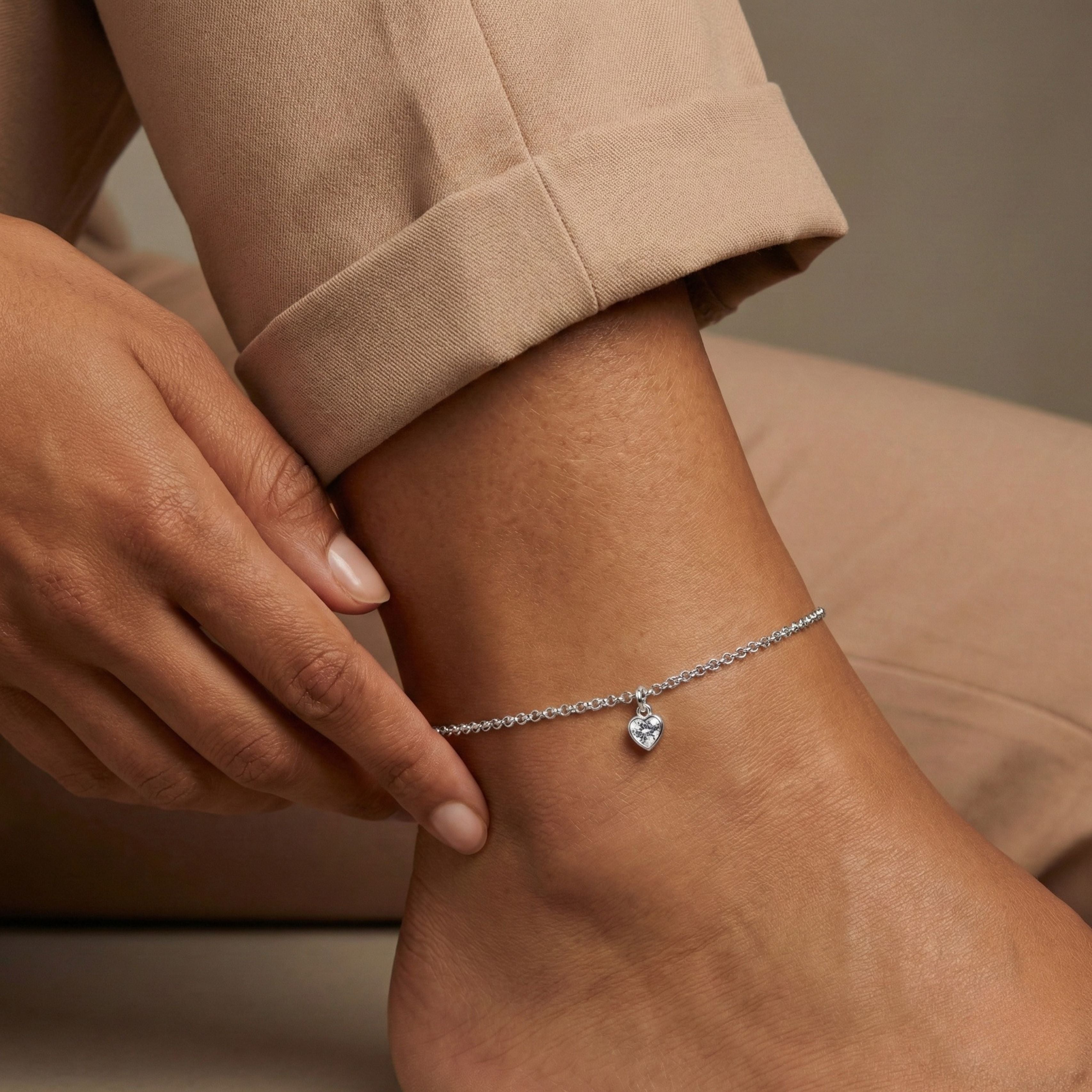 Sterling Silver Liv Birthstone Heart Anklet