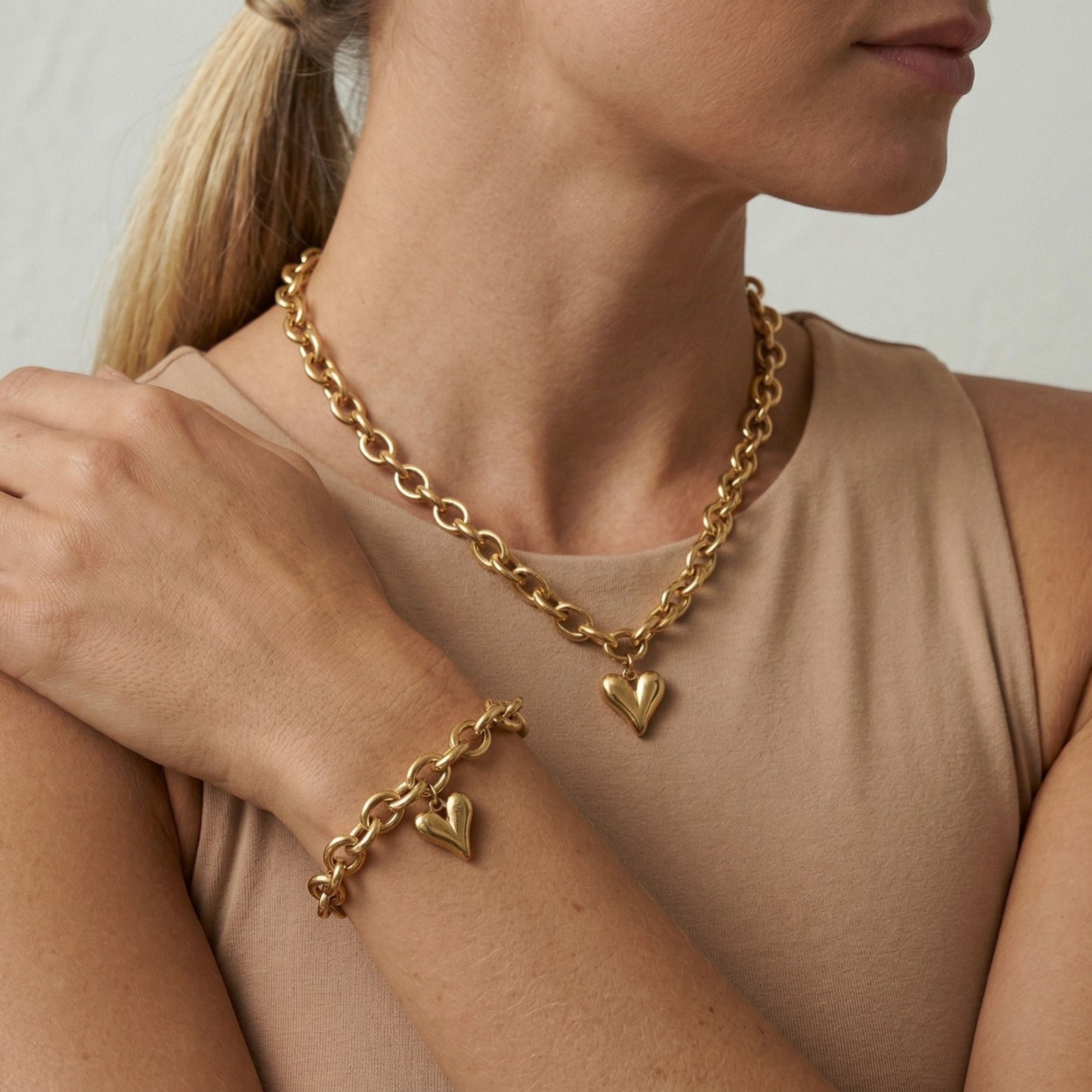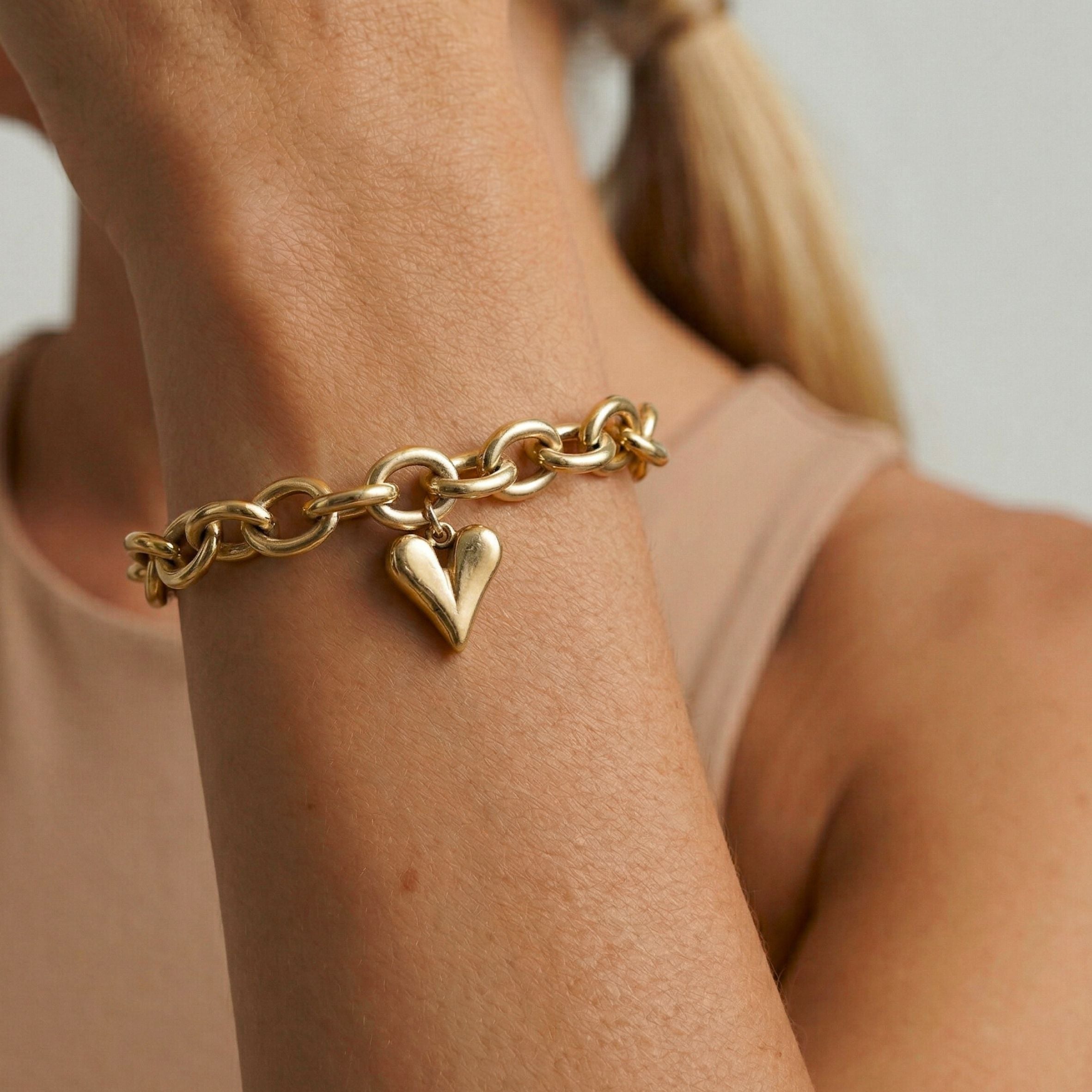 Design: Chunky link chain with a bold puffed heart charm