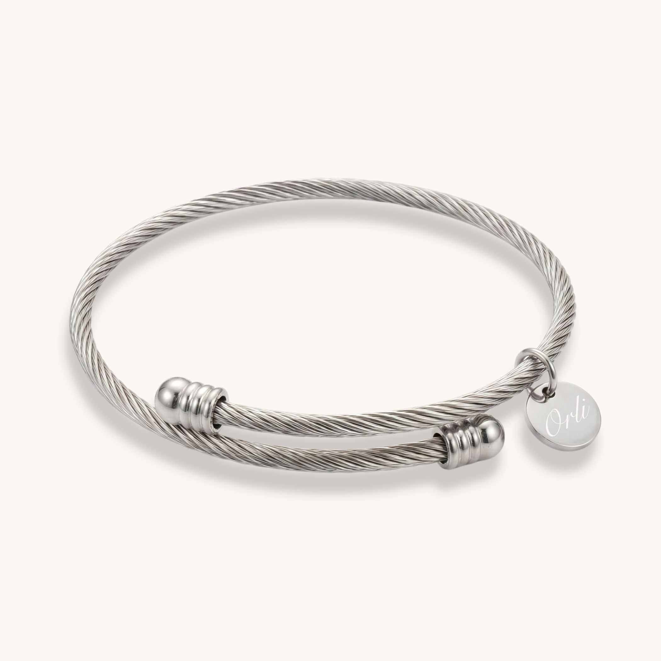Design: Twisted cable-style bangle with smooth polished end caps for a clean, contemporary finish
