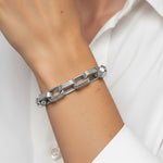 This silver bracelet blends bold geometry with everyday polish – angular links with engraved textures bring edge to your wrist stack.