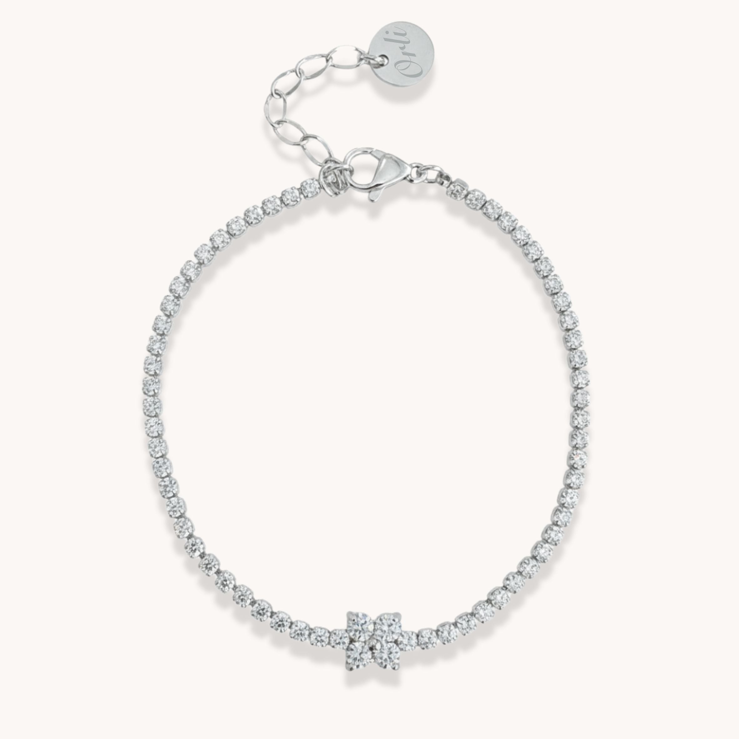 A delicate mini clover tennis bracelet inspired by luck, love and everyday sparkle.