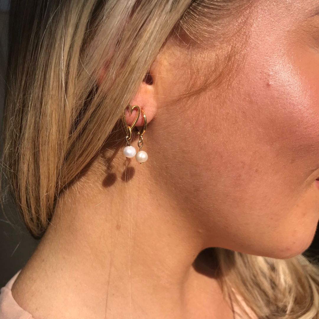 Stay on trend with these stunning huggie hoops with freshwater pearls!