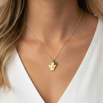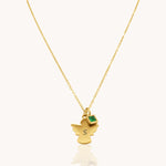 A meaningful angel pendant necklace paired with a sparkling birthstone charm for a personal touch.