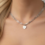 Classic Heart Engravable Long Link Necklace in Silver