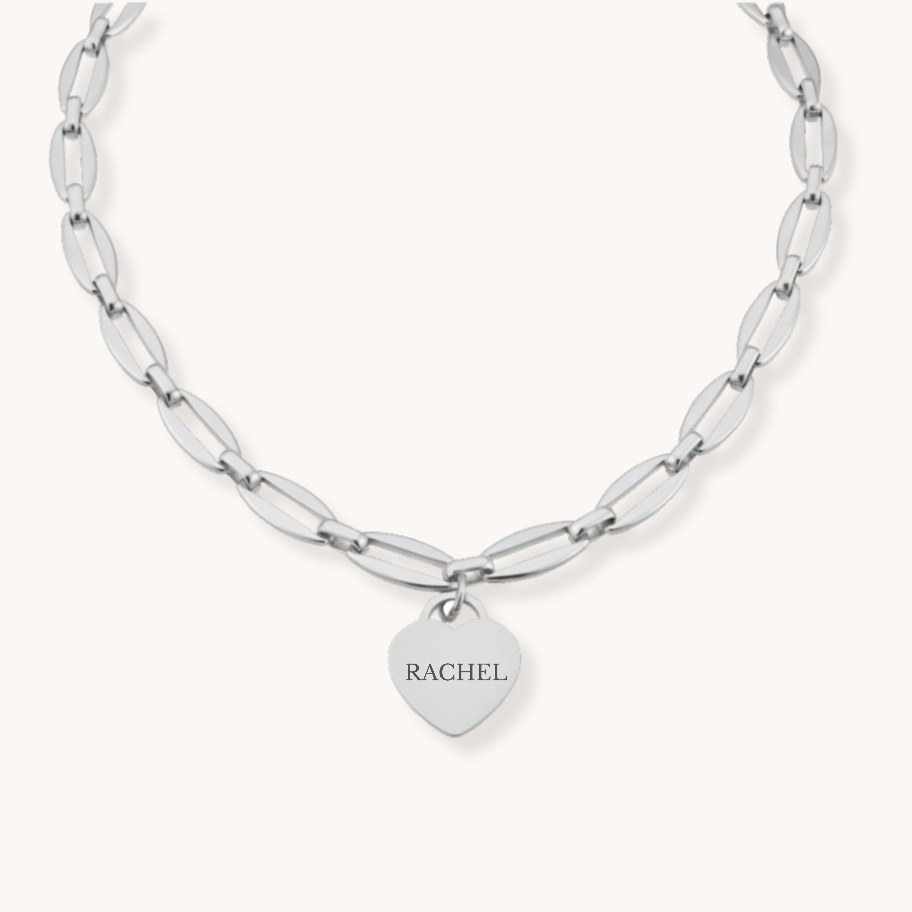 A silver heart necklace with a personal touch — bold, meaningful and perfect for everyday wear or thoughtful gifting.