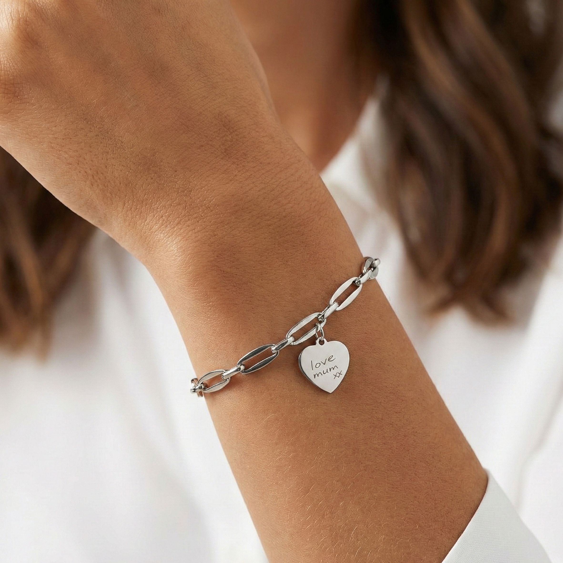 Handwritten Engravables- Classic Heart Long Link Bracelet
