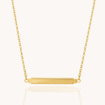 Design: Slim horizontal bar pendant on a fine chain, polished to a radiant shine