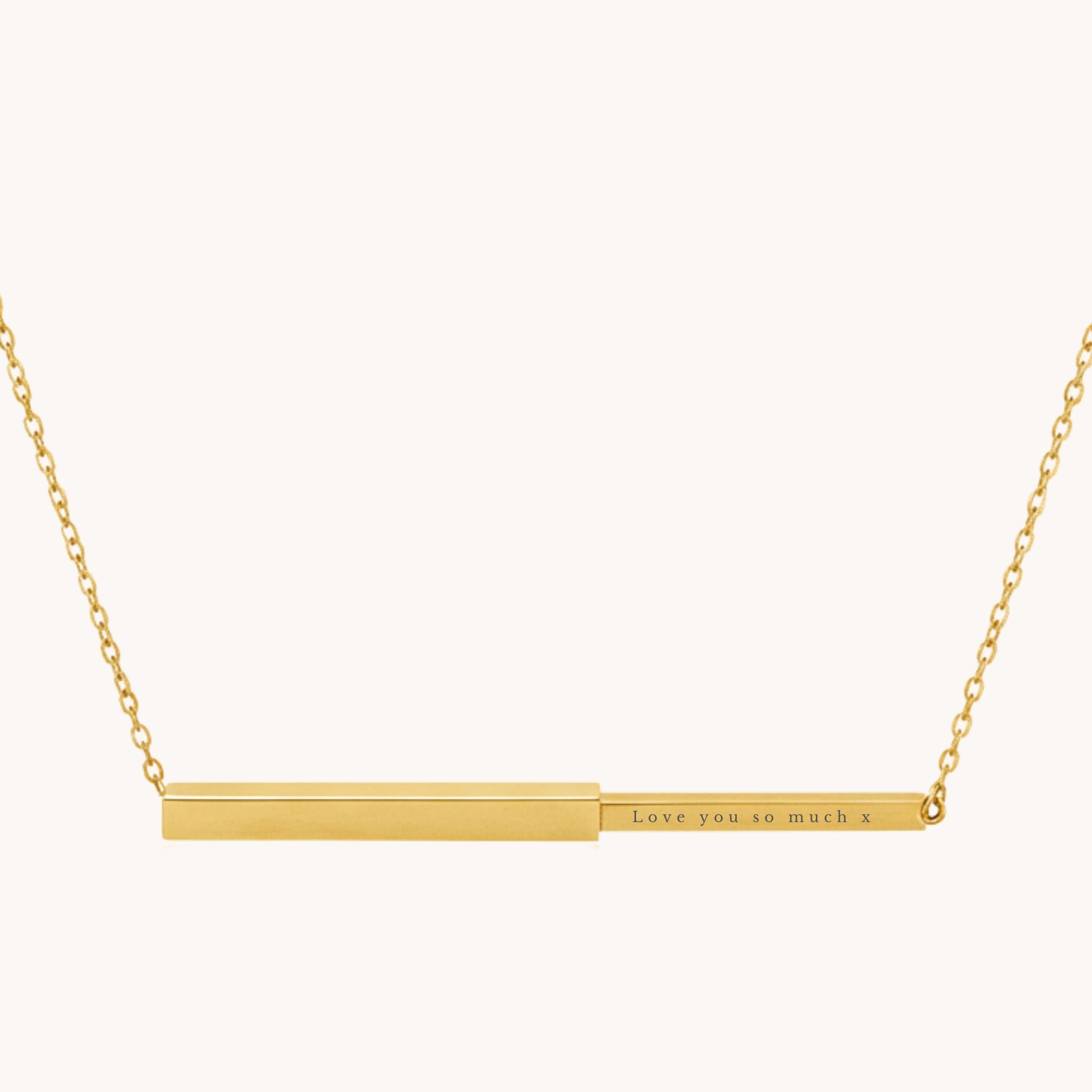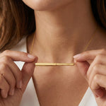 A classic beauty with a secret sentiment. Our Hidden Message Necklace in gold features a sleek bar that hides your engraved words on the reverse – a personal message only you know is there. Effortlessly elegant, with a warm golden glow that complements every look.