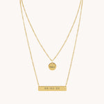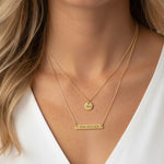 A sleek layered necklace with a simple bar and round disc for everyday style.