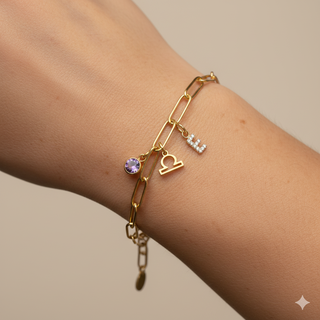 Initial & Birthstone Paperclip Chain Bracelet, Gold