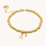 A meaningful gold beaded initial bracelet that shines with sentiment — wear it solo for understated elegance or stack it with your favourites for a personalised look.