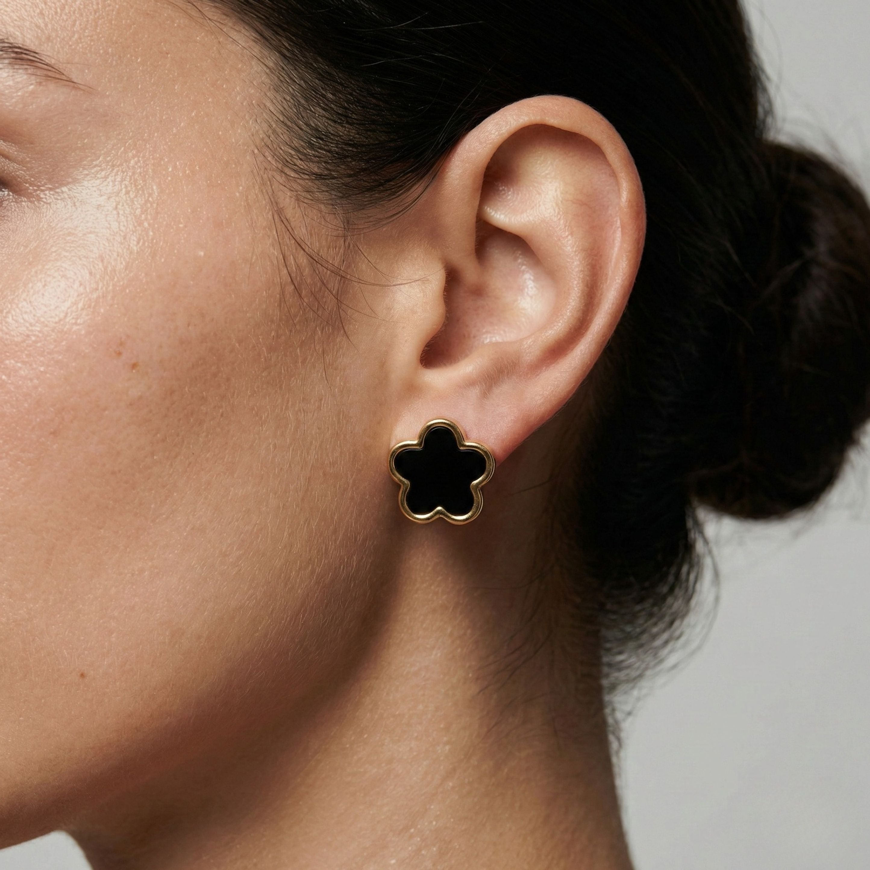 These bold, trending black clover studs add an elegant touch to any outfit, perfect for a statement look.
