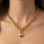 Design: Chunky oval link chain with a puffed heart pendant for an eye-catching look.