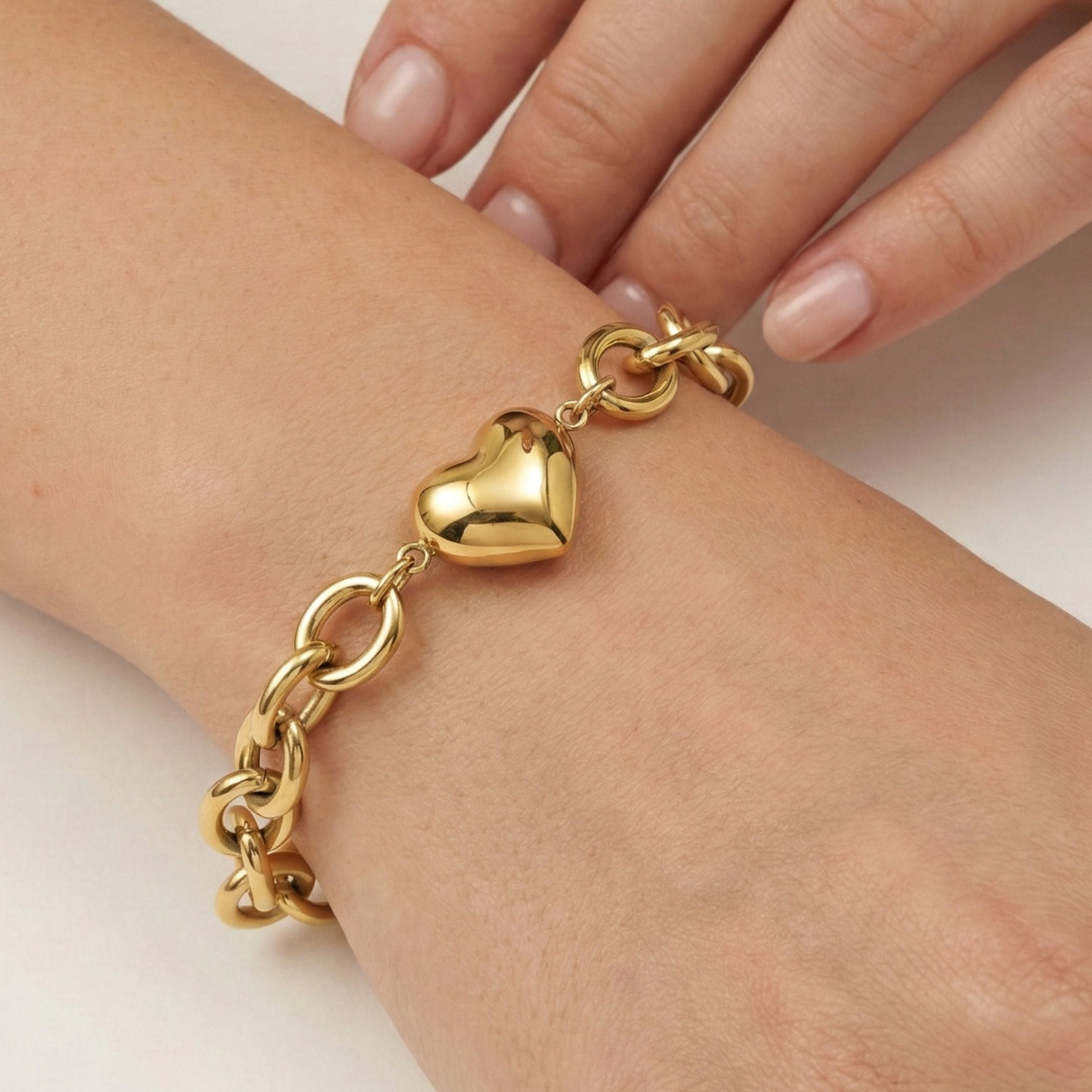 Make a statement with the Heart Link Chunky Bracelet, designed to add effortless elegance and a touch of bold charm to your look. Featuring distinctive interlinked hearts and a luxurious gold finish, it’s the perfect blend of strength and sentiment — ideal for gifting or self-love.