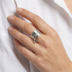 Mini Open Heart Hammered Charm Ring