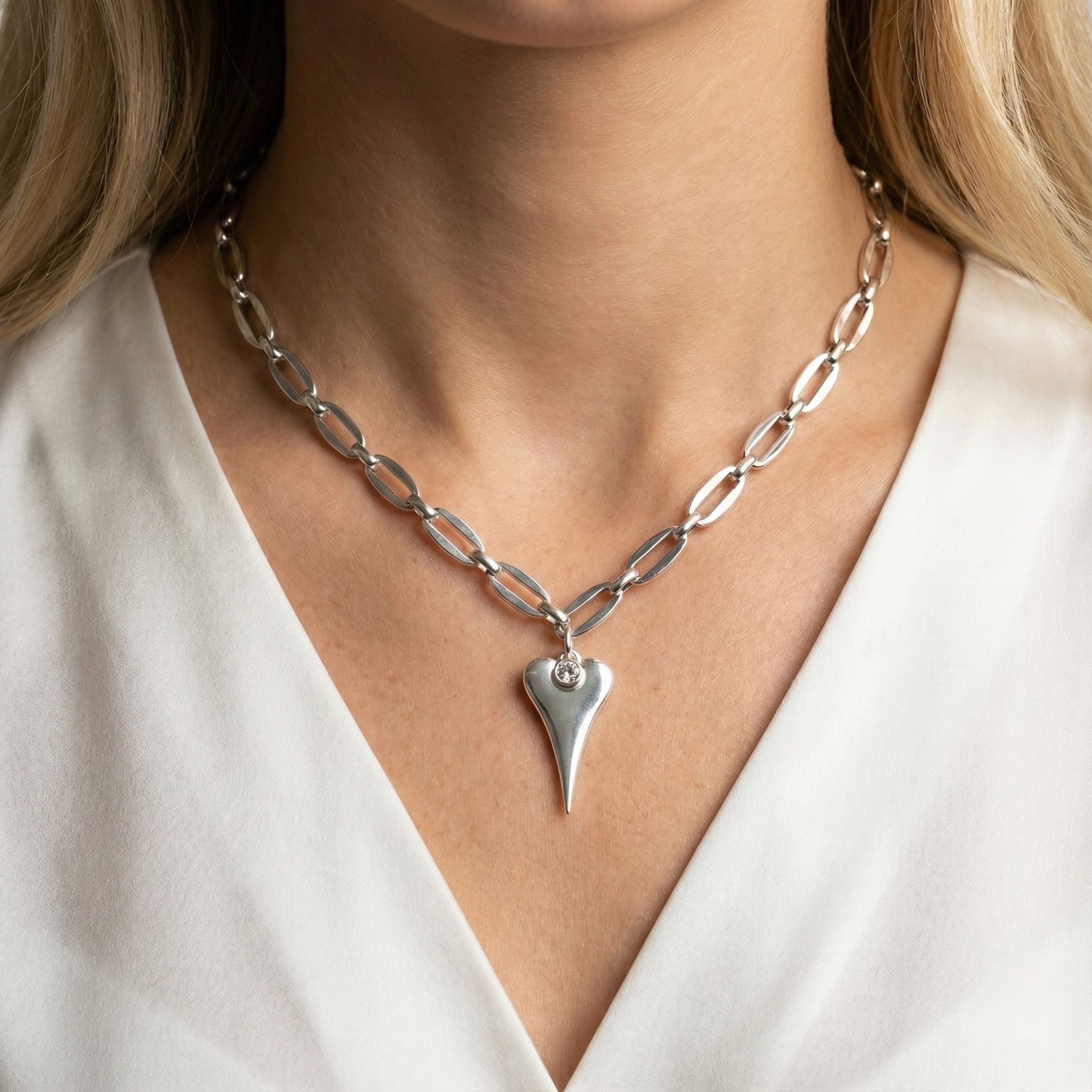 Material: Chain crafted from premium stainless steel; heart pendant is silver plated