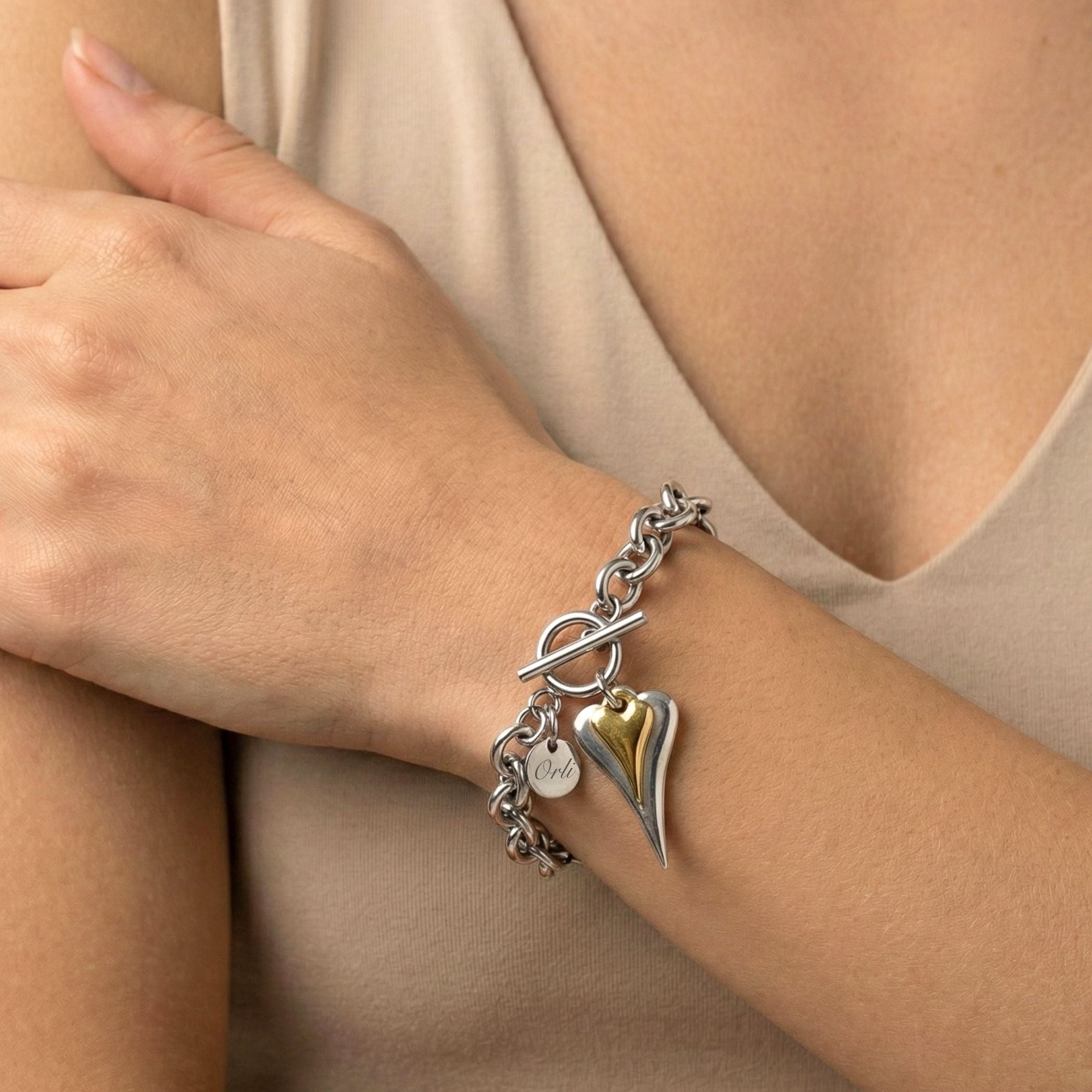 A two-tone heart bracelet that’s bold, sculptural and full of meaning — perfect for gifting or adding a touch of modern romance to your collection.