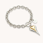Hourglass Heart Chunky T-Bar Bracelet in Silver & Gold