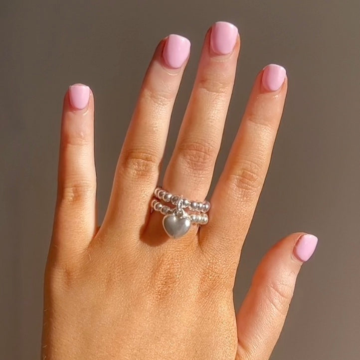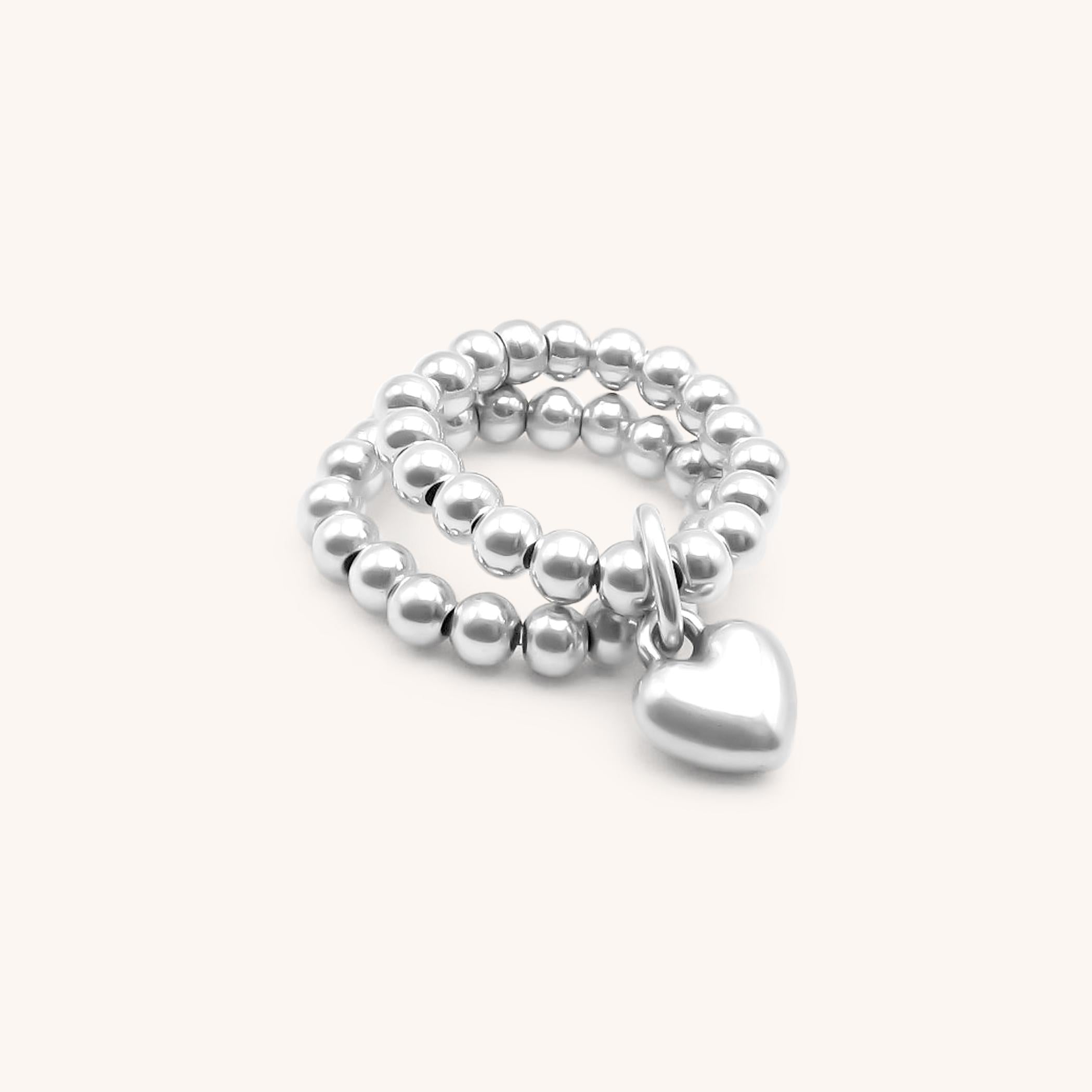 Elevate your style with our Set of 2- Puffed Heart & Essential Beads Ring. The stretch design ensures a comfortable fit, while the puffed heart adds a romantic and charming touch.