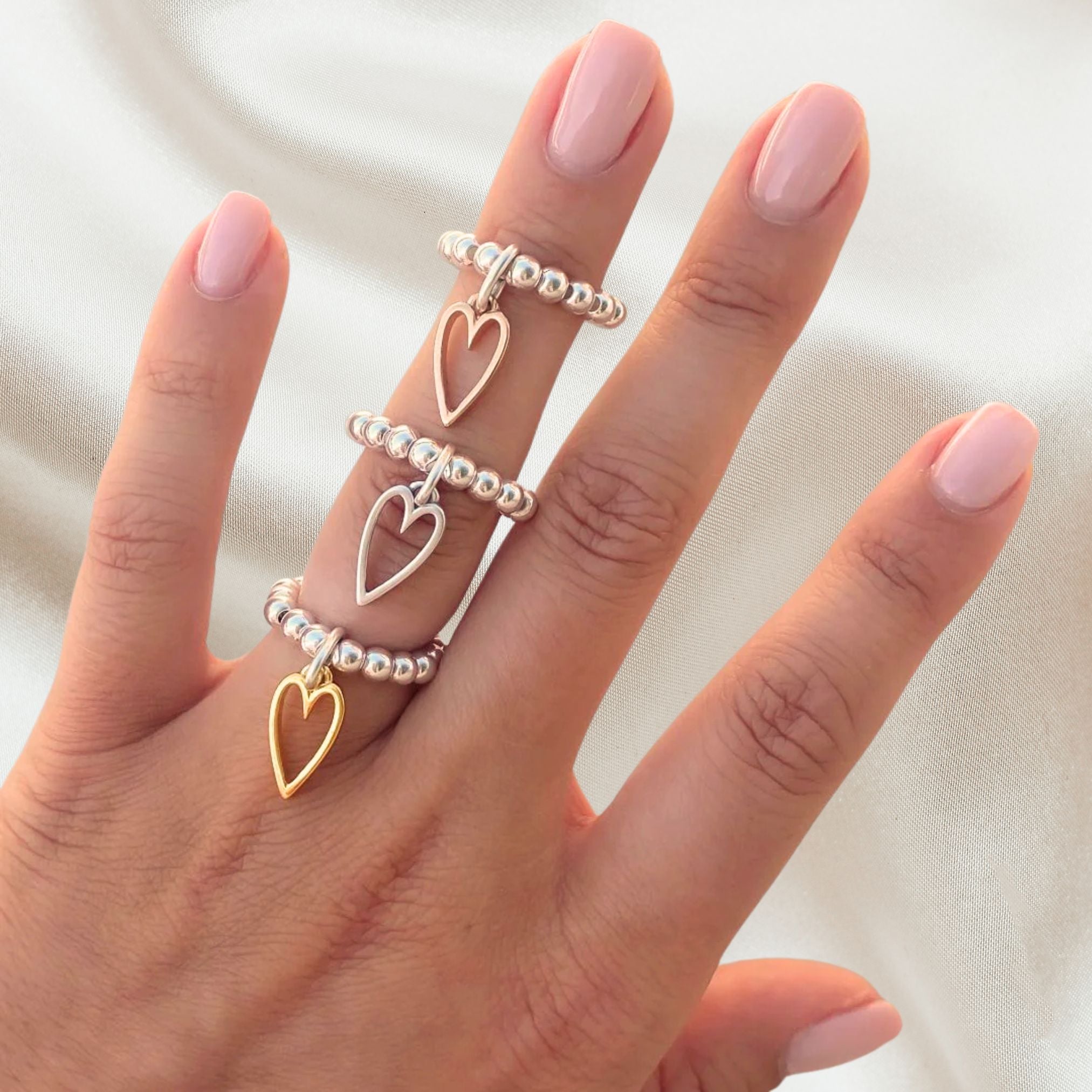 Delicate and stylish, this beaded ring features a beautifully crafted open heart charm, adding a touch of elegance to any jewellery collection. Whether you prefer classic silver, romantic rose gold, or warm gold, this ring is perfect for layering or wearing alone.