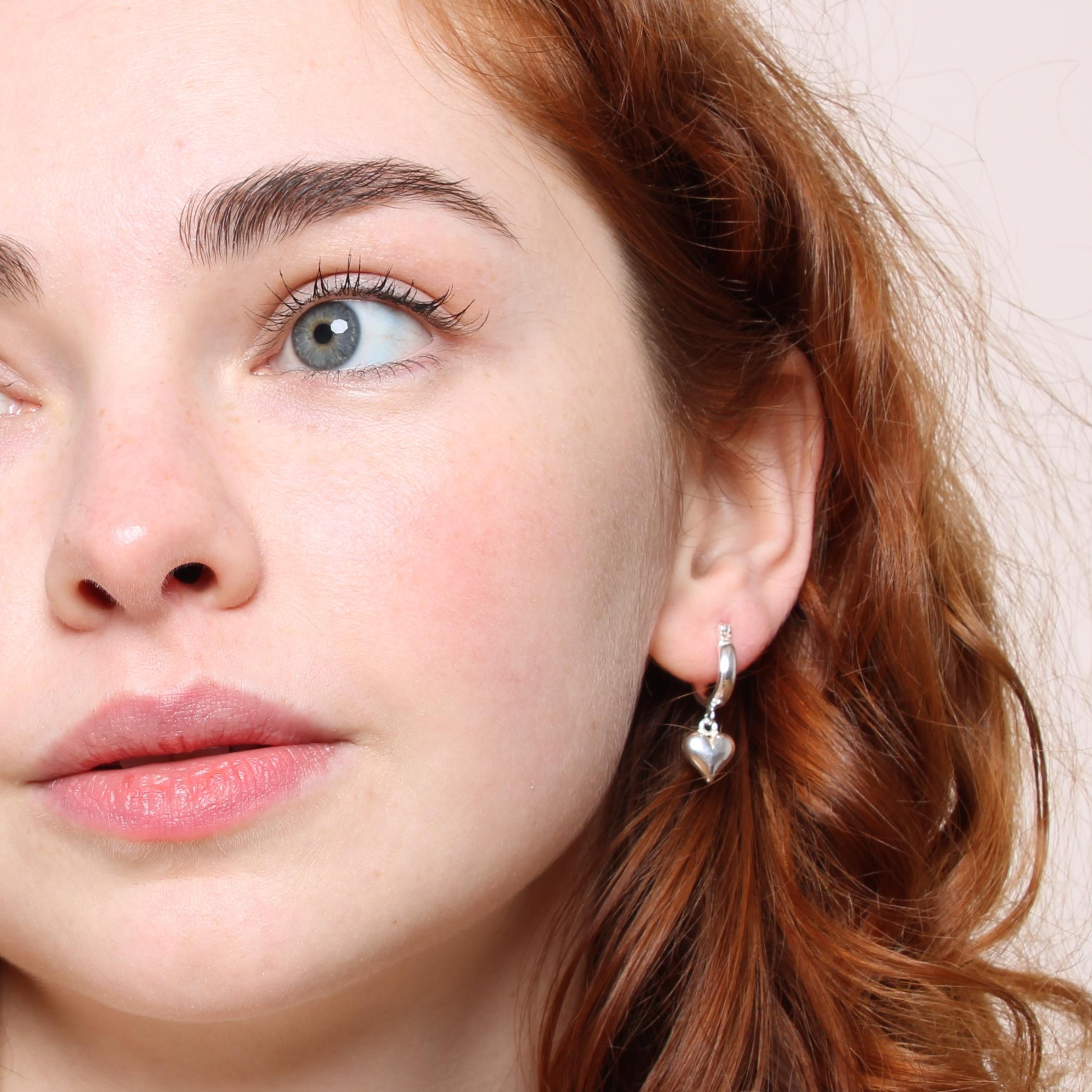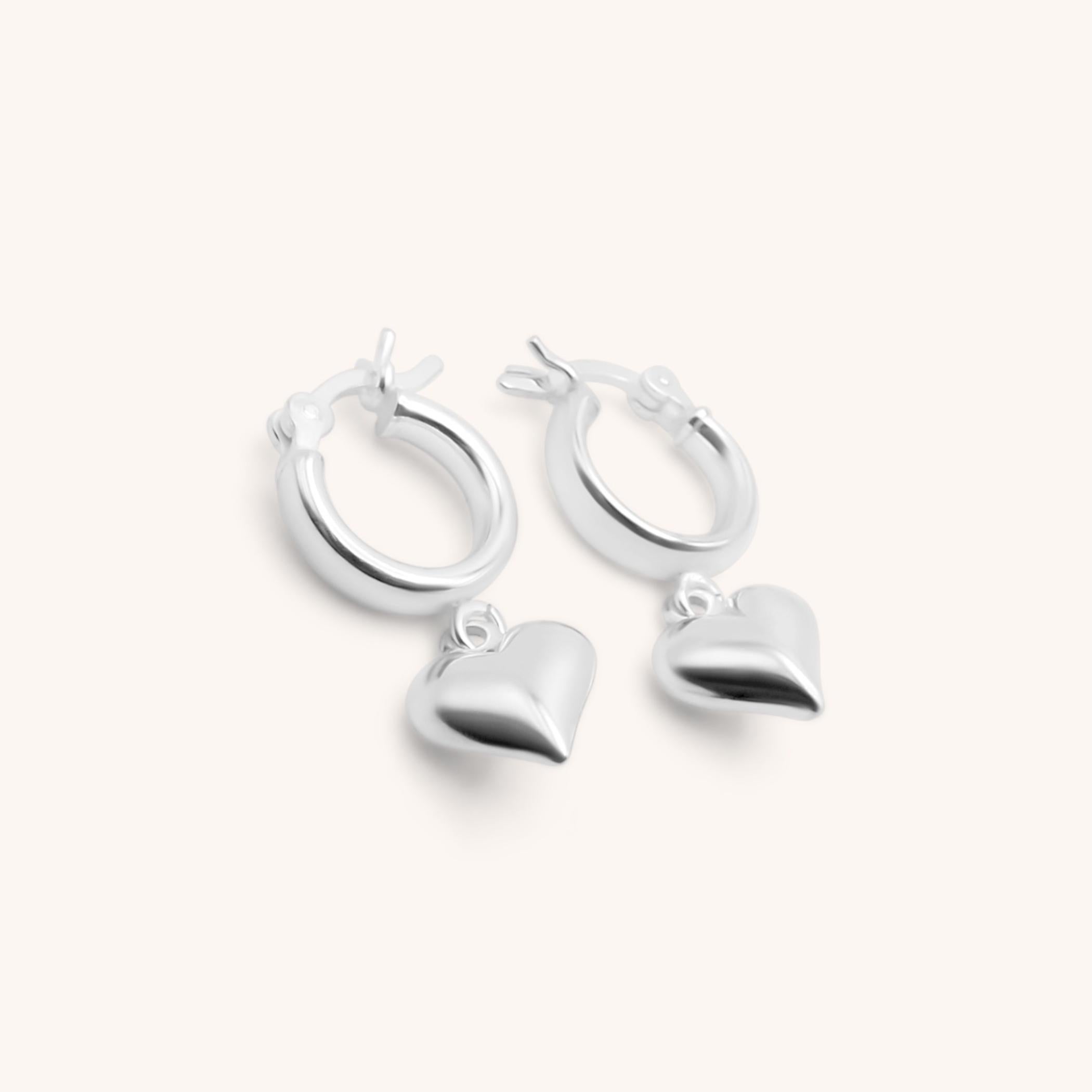 Consider your ear stack officially upgraded. These stunning Mia heart charm Sterling Silver huggie hoops will brighten up any outfit. They hug close to your lobe, making them perfect for any piercing. They can be stacked with other earrings or worn alone for a statement look.