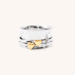 Sterling Silver Spinner Ring with Gold Hearts
