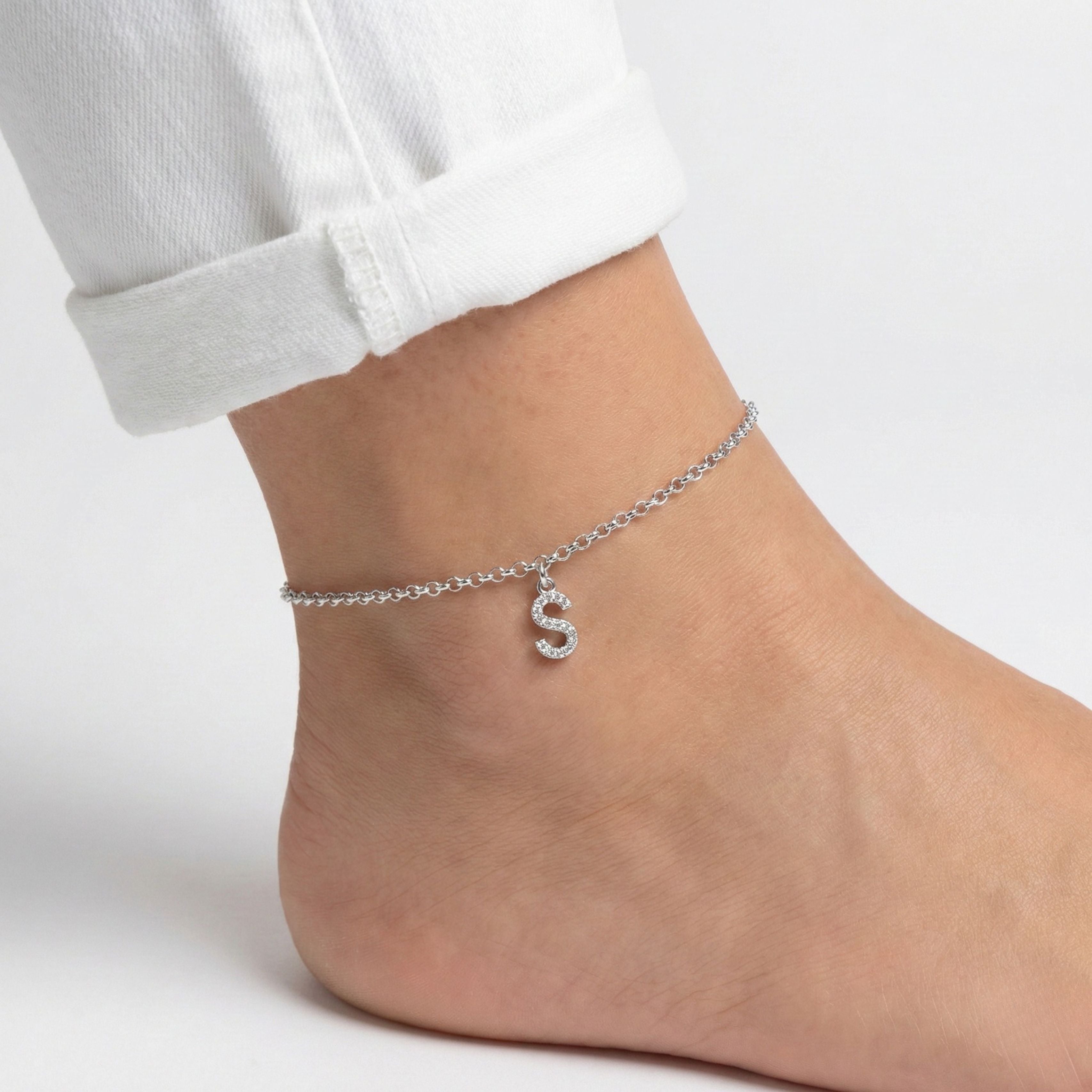 Personalise your every step with the Sterling Silver Crystal Initial Anklet. Crafted from a beautiful Rolo Chain with a crystal initial charm. Choose from your choice of initial and elevate your look from head to toe (literally).