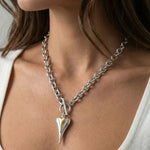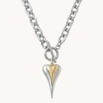 Hourglass Heart Chunky T-Bar Necklace in Silver & Gold