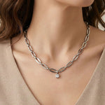 The Long Link Birthstone Necklace in Silver features a contemporary long-link chain with a delicate crystal pendant that can be customised with your chosen birthstone.
