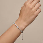 The Multi Clover Tennis Bracelet is designed for those who love balance and brilliance. Featuring alternating clover motifs and shimmering cubic zirconia links, it captures light from every angle.
