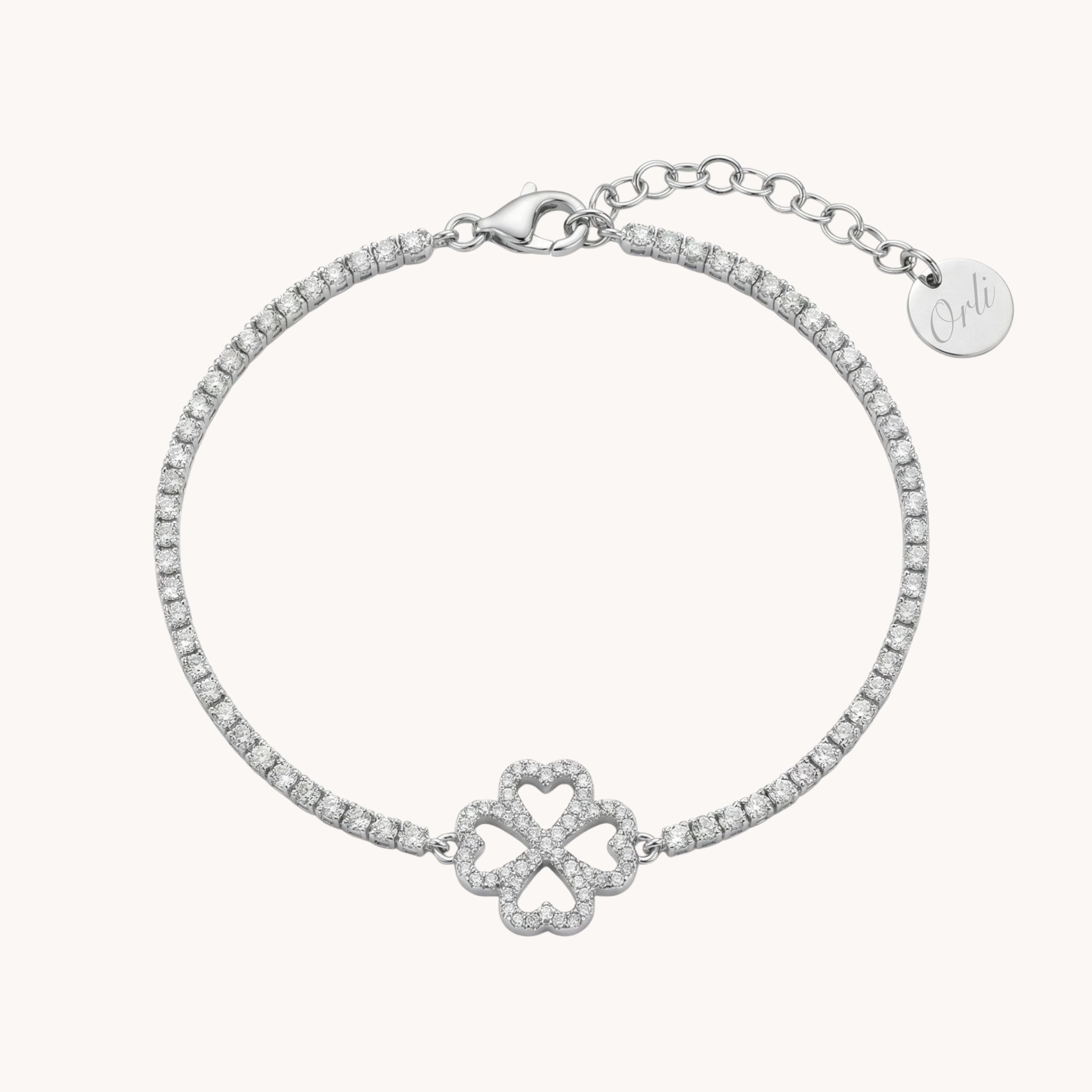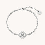 Refined and radiant, the Single Clover Tennis Bracelet pairs a central clover motif with rows of sparkling cubic zirconia stones. A symbol of luck and love, this bracelet adds instant polish to any outfit.